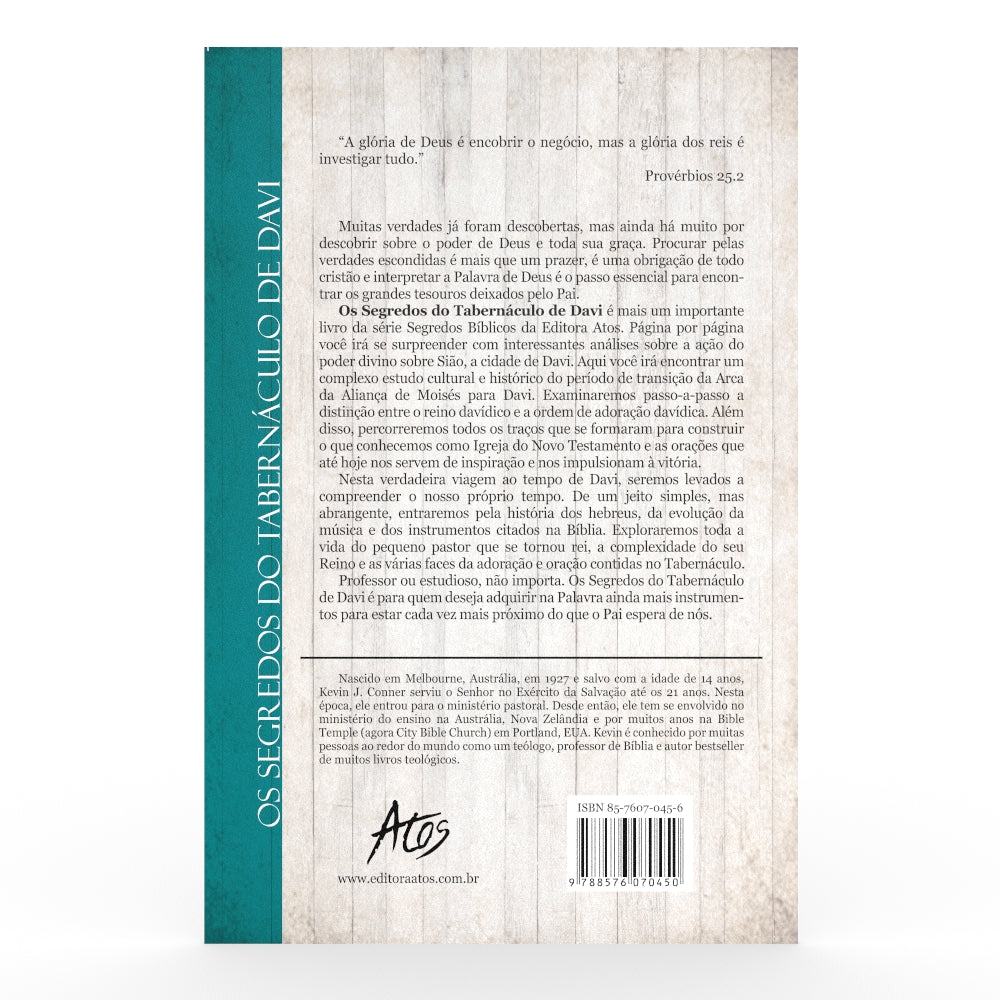 Muitas verdades já foram descobertas, mas ainda há muito por descobrir sobre o poder de Deus e toda sua graça. Procurar pelas verdades escondidas é mais que um prazer, é uma obrigação de todo cristão e interpretar a Palavra de Deus é o passo essencial para encontrar os grandes tesouros deixados pelo Pai. Os Segredos do Tabernáculo de Davi é mais um importante livro da série Segredos Bíblicos da Editora Atos. Página por página você irá se surpreender com interessantes análises sobre a ação do poder divino sobre Sião, a cidade de Davi. Aqui você irá encontrar um complexo estudo cultural e histórico do período de transição da Arca da Aliança de Moisés para Davi. Examinaremos passo-a-passo a distinção entre o reino davídico e a ordem de adoração davídica. Além disso, percorreremos todos os traços que se formaram para construir o que conhecemos como Igreja do Novo Testamento e as orações que até hoje nos servem de inspiração e nos impulsionam à vitória. Nesta verdadeira viagem ao tempo de Davi, seremos levados a compreender o nosso próprio tempo. De um jeito simples, mas abrangente, entraremos pela história dos hebreus, da evolução da música e dos instrumentos citados na Bíblia. Exploraremos toda a vida do pequeno pastor que se tornou rei, a complexidade do seu Reino e as várias faces da adoração e oração contidas no Tabernáculo. Professor ou estudioso, não importa. Os Segredos do Tabernáculo de Davi é para quem deseja adquirir na Palavra ainda mais instrumentos para estar cada vez mais próximo do que o Pai espera de nós.