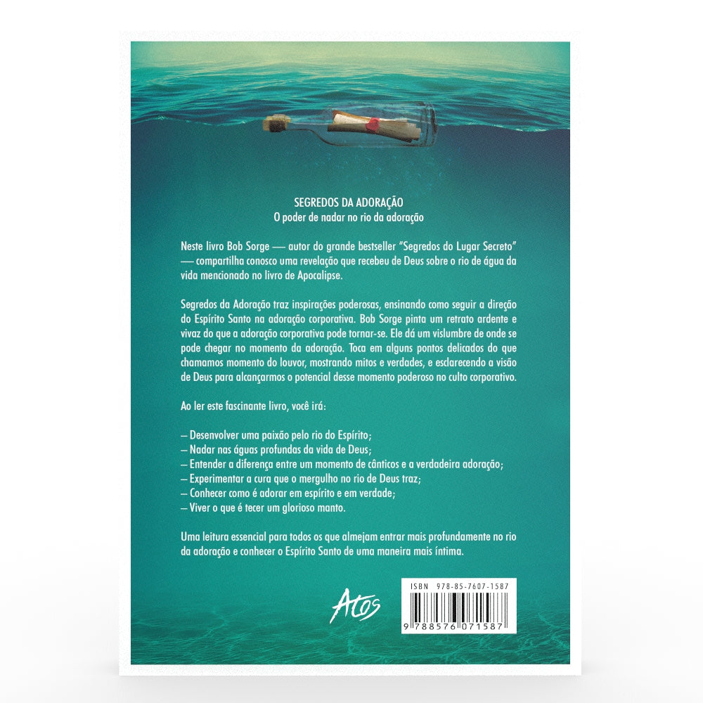 Neste livro Bob Sorge — autor do grande bestseller “Segredos do Lugar Secreto” compartilha conosco uma revelação que recebeu de Deus sobre o rio de água da vida mencionado no livro de Apocalipse. Segredos da Adoração traz inspirações poderosas, ensinando como seguir a direção do Espírito Santo na adoração corporativa. Bob Sorge pinta um retrato ardente e vivaz do que a adoração corporativa pode tornar-se. Ele dá um vislumbre de onde se pode chegar no momento da adoração. Toca em alguns pontos delicados do que chamamos momento do louvor, mostrando mitos e verdades, e esclarecendo a visão de Deus para alcançarmos o potencial desse momento poderoso no culto corporativo. Ao ler este fascinante livro, você irá: